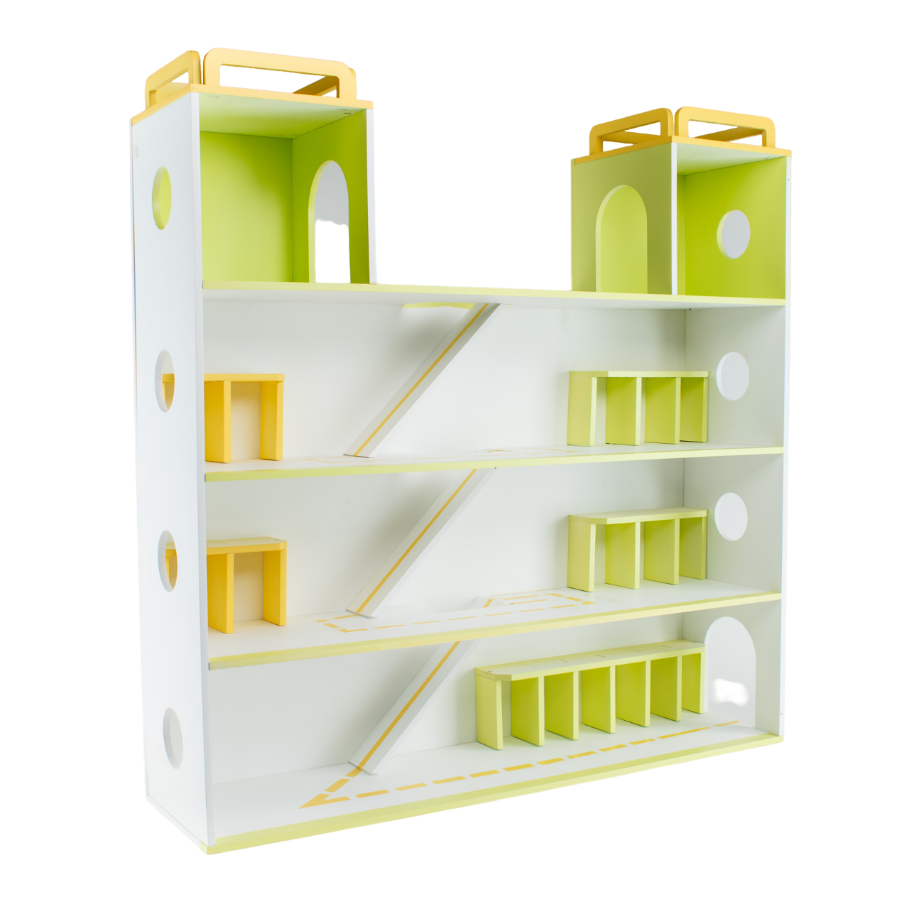Комплектация: 4 яруса. 16 малых гаражей, 2 больших, 2 вертолетные площадки, 3 сквозных спуска для динамичной игры.