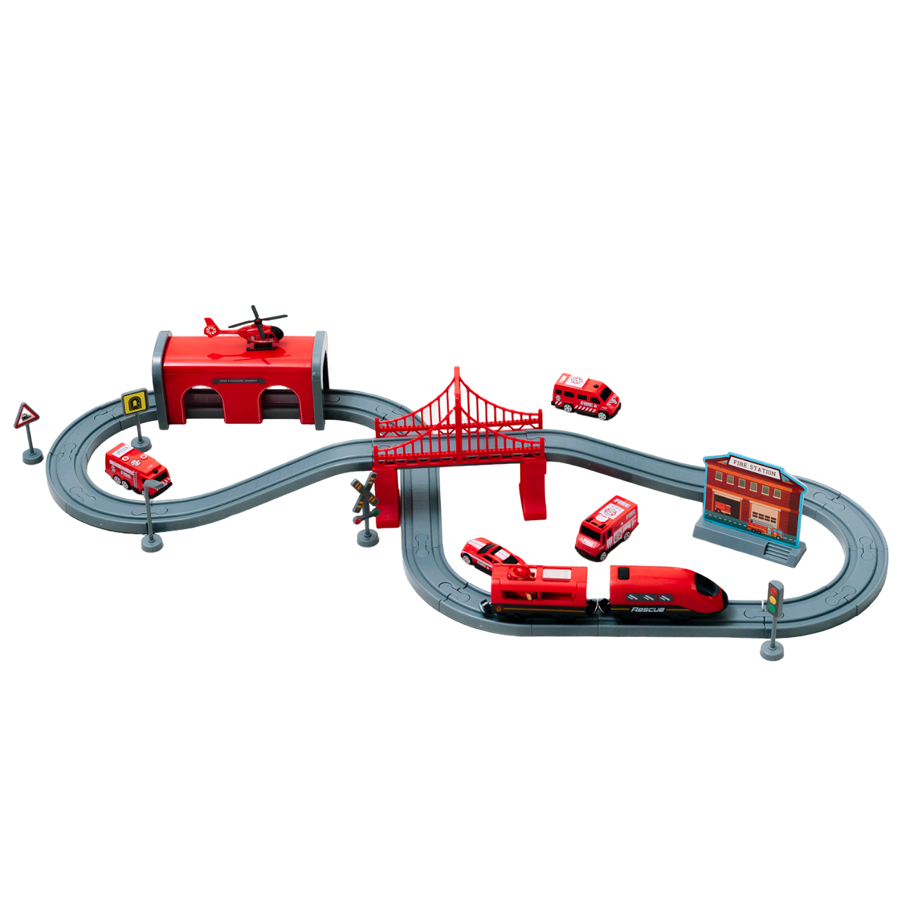 • Комплектация: локомотив, один вагон, железная дорога, мост, туннель, вертолет, две машинки, дорожные знаки - 6шт. и фигурка спасателя.