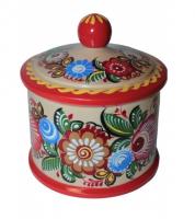 Шкатулка, изготовленная из дерева, раскрашена городецкой росписью. Ее стенки и крышку украшают традиционные для этой техники цветы, узоры и изображения птичек, выполненные красками насыщенных цветов.