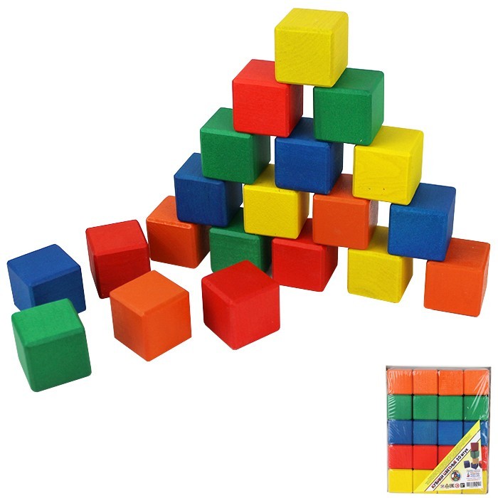 Кубики - классическая развивающая игрушка для малышей. С ее помощью ребенок будет знакомиться с основными цветами, тренировать пространственное и логическое мышление, будет развивать навыки мелкой моторики, воображение и координацию. В комплект входят 20 кубиков из экологически чистого материала - дерева, хорошо отшлифованные и покрытые безопасными красителями 5 разных цветов - синего, красного, желтого, оранжевого и зеленого. Из кубиков можно складывать башенки, дома, стены и другие конструкции, которые подскажет ребенку его фантазия.