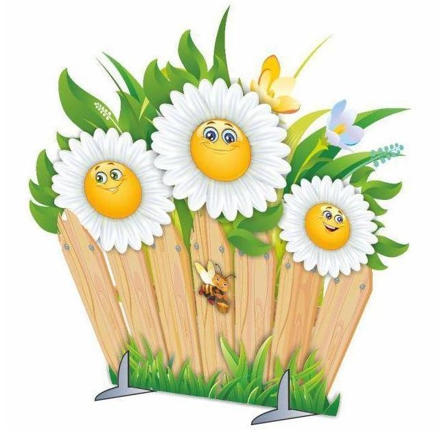 Декорация в виде двухстороннего заборчика с веселыми ромашками для театральных, сценических постановок.