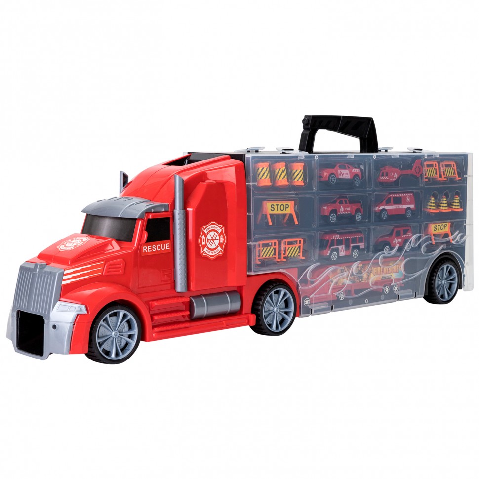 • Автовоз Служба спасения 2 в 1: игрушечный грузовой автомобиль и система хранения для маленького спецтранспорта.