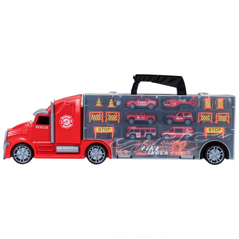 • Автовоз Служба спасения 2 в 1: игрушечный грузовой автомобиль и система хранения для маленького транспорта.