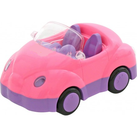 Конструкция игрушки позволит малышке катать в ней любимых кукол. Колеса автомобиля соединяются железными осями.