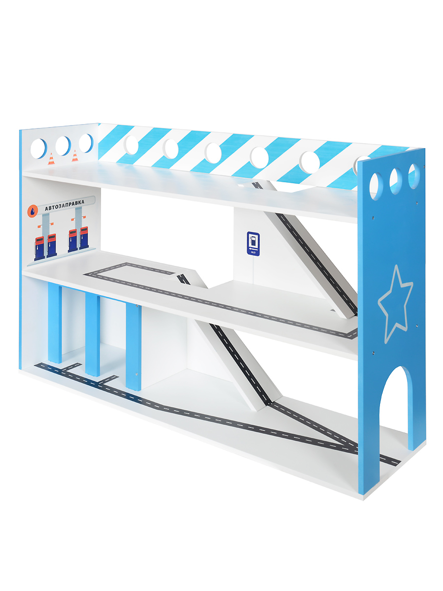 Комплектация: 3 яруса, 2 сквозных спуска для динамичной игры, верхний ярус-полка.