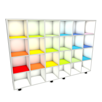 Корпус - цвет белый, полки - цветные, цвет в ассортименте.