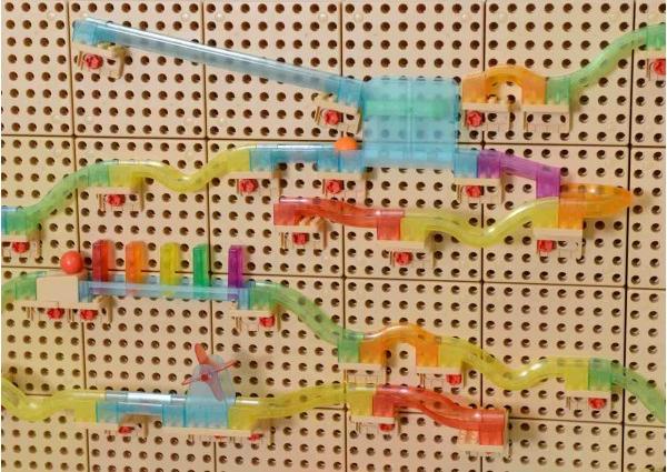 Система кинетических дорожек - это уникальная игра, в которой дети могу конструировать проходы и дорожки, дополняя их различными приспособлениями изменения движения, поворота.