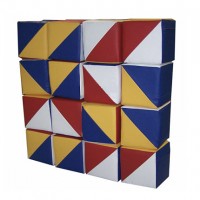 «Сложи узор» - это оборудование для игровых комнат, состоящее из 16 разноцветных кубиков, которые можно собирать в различные комбинации.